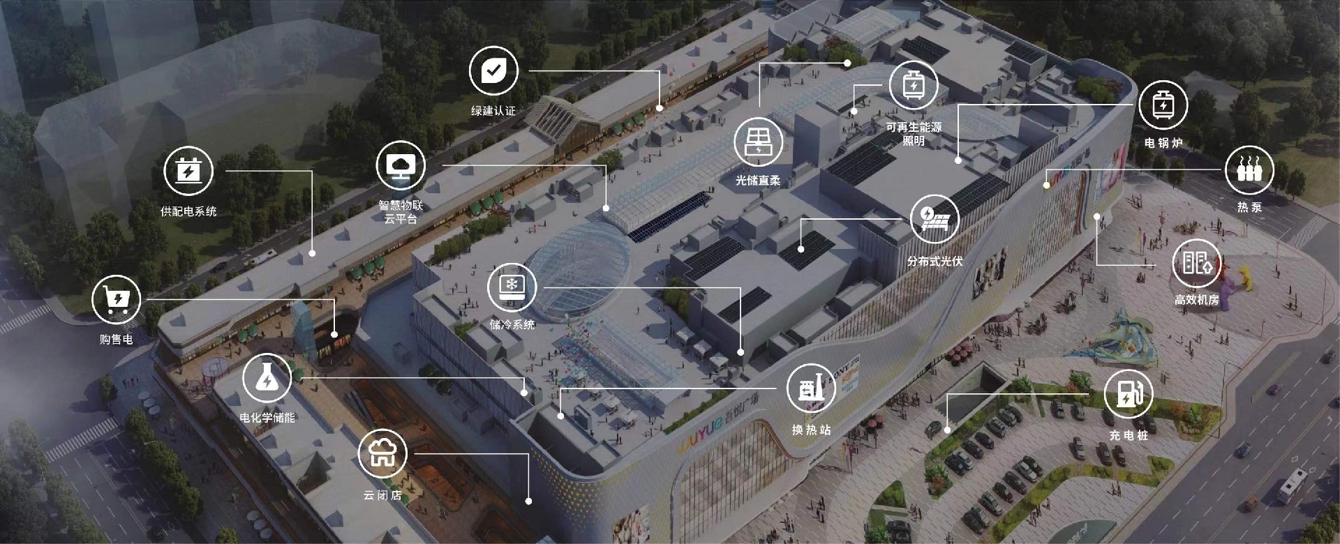 吾盛從商場建設期介入設計全新的綜合性能源方案。實現多種能源綜合利用,滿足電/冷/熱/需求,大幅提升能源利用清潔化水平,踐行綠色低碳。建成后預計實現能源方案優本達2000萬,年降低商場能耗費用超210萬。該廣場建成后將是全國首個超低能耗商業綜合體項目。